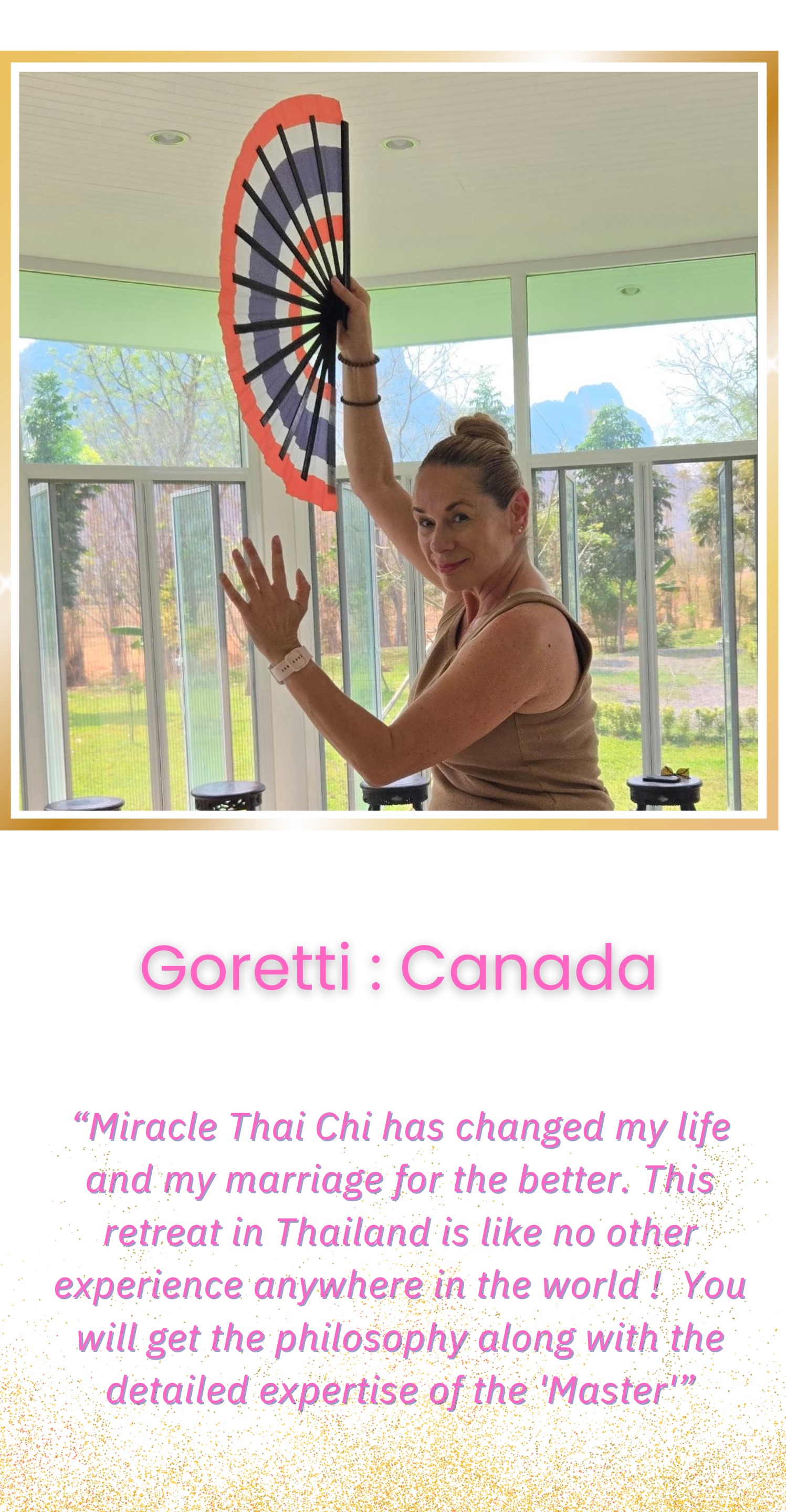 Miracle Thai Chi has changed my life and my marriage for the better.This retreat in Thailand is like no other experience anywhere in the world!